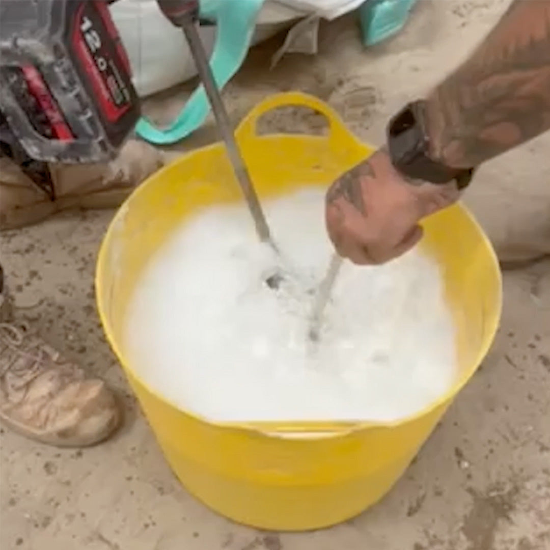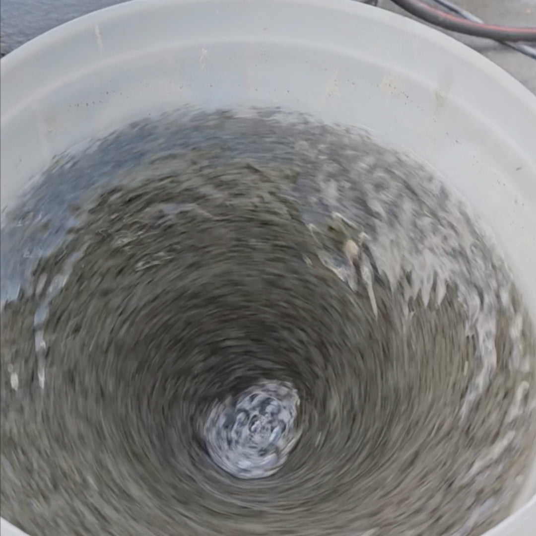 Add a 35 g sachet to a standard 20L washout bucket, stir to activate for around 60 - 90 seconds, then let the solids settle. The clay-based minerals grab the fine particles, form larger clumps and help reduce the pH of the wash water. You then empty the bucket into your SLURRYTUB® where the solids are captured in the filter and the treated water drains through.